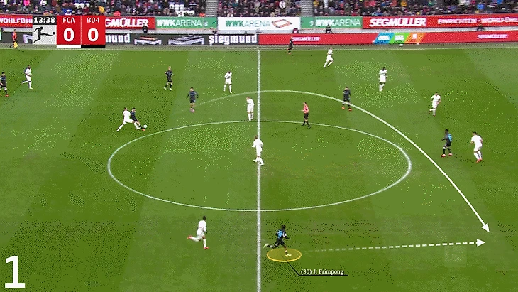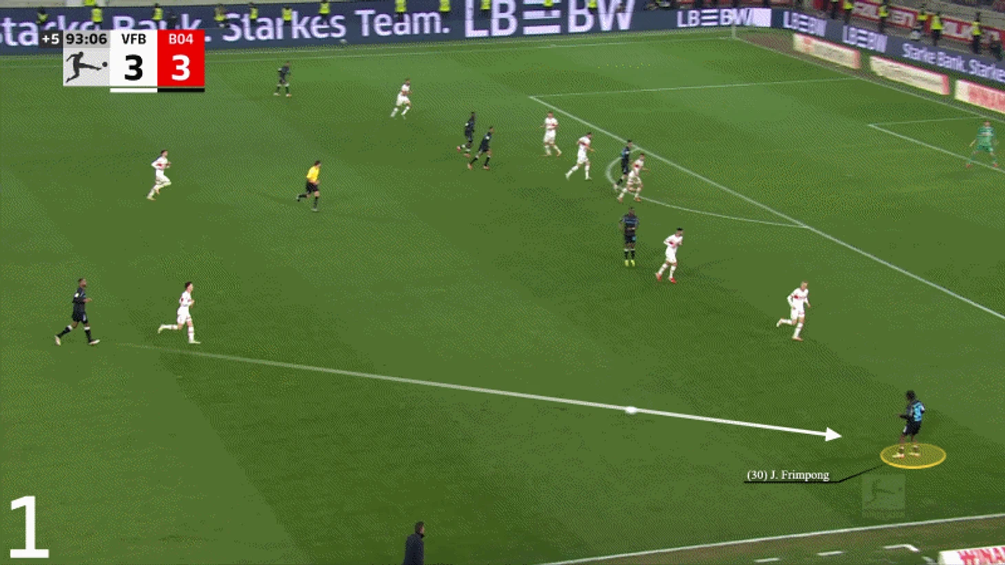 Против «Штутгарта» Фримпонг вывел защитника один на один и, используя свою скорость, прошел метр и сделал передачу на ближнюю штангу на Патрика Шика, который ударом головой отправил мяч в ворота.