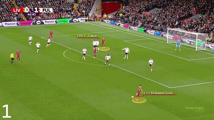Их навесы и проходы под фланги сыграли решающую роль в создании ситуаций один на один для Салаха и Коди Гакпо или Луиса Диаса на противоположном фланге. Также увеличилось количество комбинаций вингер - вингер. Передачи Салаха на дальнюю штангу на Гакпо — до того, как тот получил недавние проблемы с травмами — были постоянной темой.