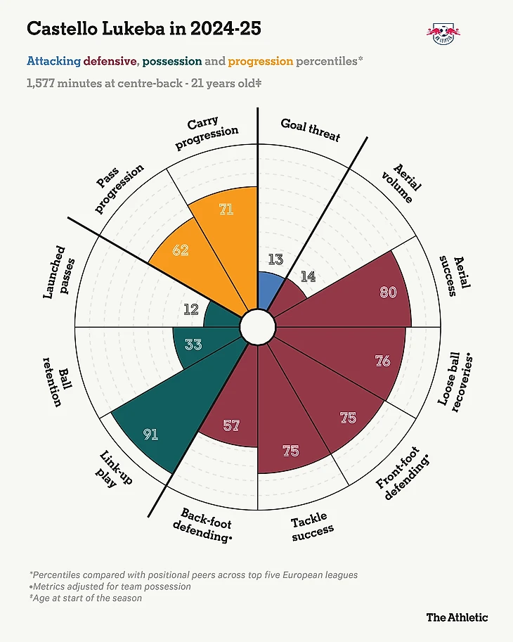 Комфортная игра в тройке или четверке защитников, одно из ключевых качеств Лукебы — это его сила в поединках один на один, умение закрывать широкие зоны, когда его крайний защитник выходит вперед, — черта, которую высоко оценил бы Арне Слот с его новыми атакующими характеристиками крайних защитников на обоих флангах.