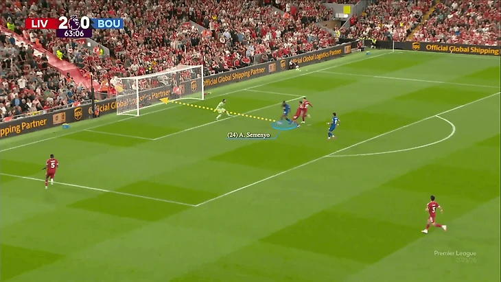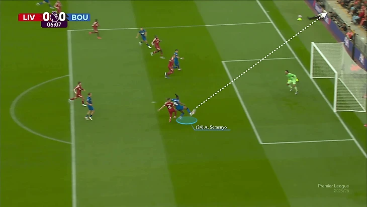 Это была атака с преимуществом, так как у «Борнмута» было два бегущих слева — и потенциально более качественный момент, если бы Семеньо отдал пас.