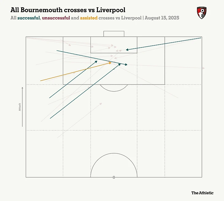 Защита от кроссов была проблемой для «Ливерпуля» на протяжении последних двух сезонов — около четверти голов в чемпионате, которые они пропустили в прошлом сезоне, были забиты с кроссов. Угроза «Борнмута» была настолько велика, что 17 выносов мяча от Ван Дейка (и 13 — головой) стали для него самыми результативными в любом матче за «Ливерпуль».