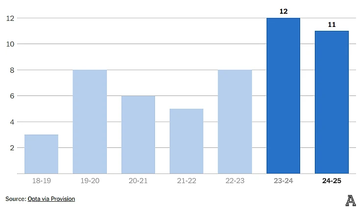 За последние два сезона Премьер-лиги «Ливерпуль» пропустил 23 гола после кроссов
