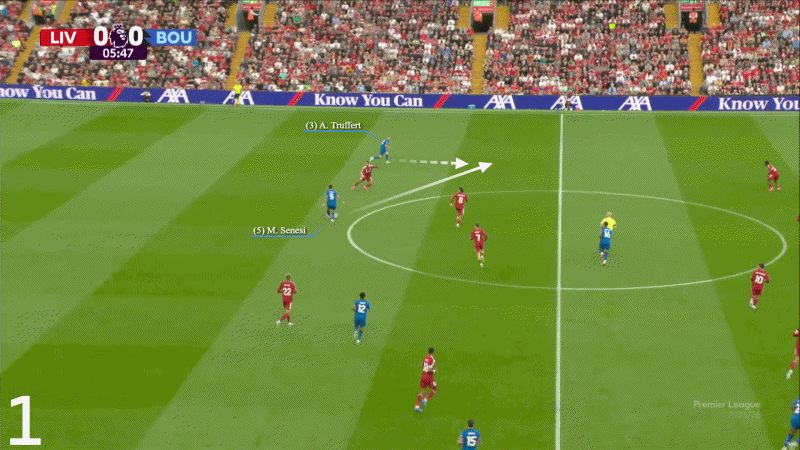 Однако, несмотря на то, что центральный защитник занял хорошую позицию, он продолжал отступать, позволив форварду «Борнмута» беспрепятственно нанести удар по воротам.