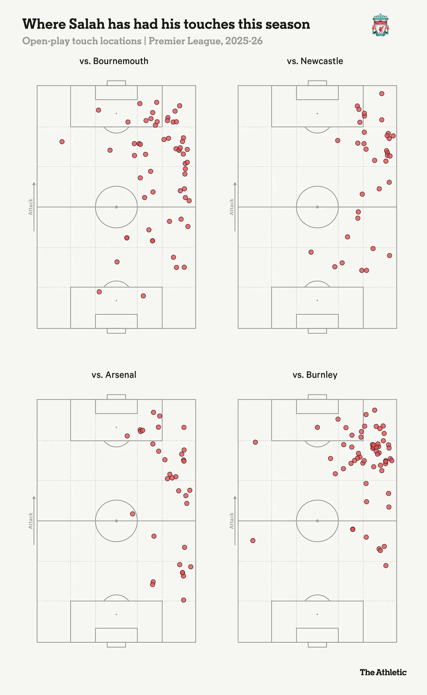 Шесть из последних девяти победных голов «Ливерпуля» на 90-й минуте или позже в высшей лиге были либо забиты или ассистированы Салахом. Неудивительно, что Арне Слот решил оставить его в команде, когда в воскресенье он объявил о переменах во все более отчаянных поисках гола.