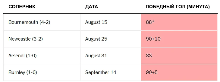 «Ливерпуль», который отлично начал сезон, стал первой командой в истории Премьер-лиги, одержавшей победу в четырех матчах подряд, благодаря победному голу в последние 10 минут.
