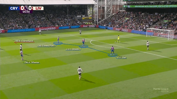 Использование «Пэласом» агрессивного центрального блока и прессинга тремя узкими нападающими затрудняло «Ливерпулю» доступ к Гравенберху.