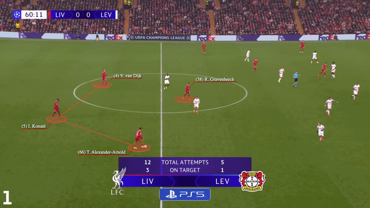 Когда мяч оказывался у защитника, Гравенберх вставал на его место. Это давало им возможность уверенно продвигаться вперед и объединяться с выдвинутым полузащитником или вингером, помогая «Ливерпулю» обходить игроков соперника.