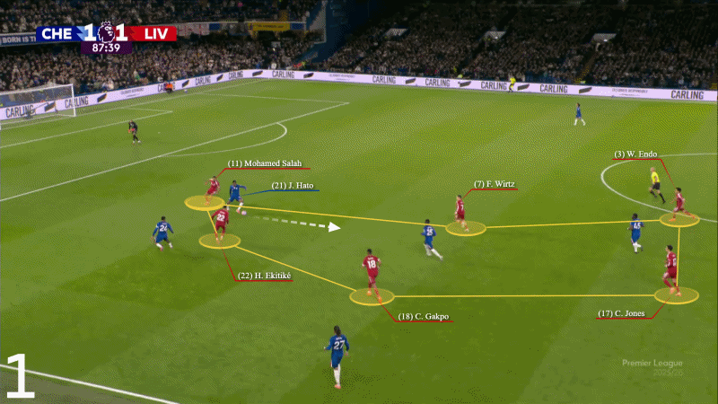 Матч с «Челси» показал, что Слот умеет приспосабливаться. Перевод Собослаи на позицию правого защитника и появление на поле Флориана Вирца и Кертиса Джонса, полузащитников, которые постоянно перемещаются, создавая пространство, помогли создать моменты, подобные приведенному ниже.