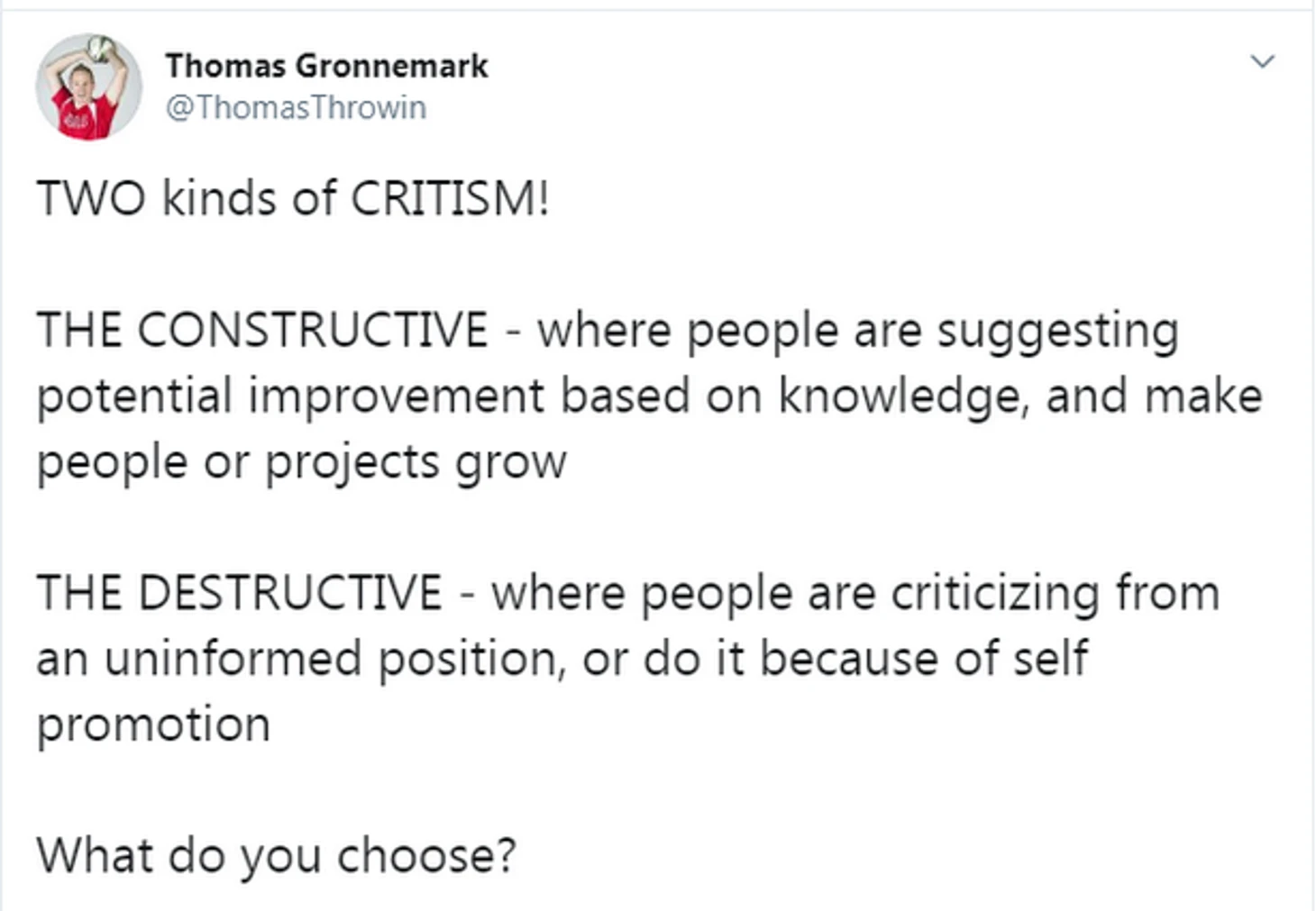 КОНСТРУКТИВНАЯ – когда люди предлагают потенциальные улучшения, основанные на собственном опыте, и помогают людям или проектам улучшаться