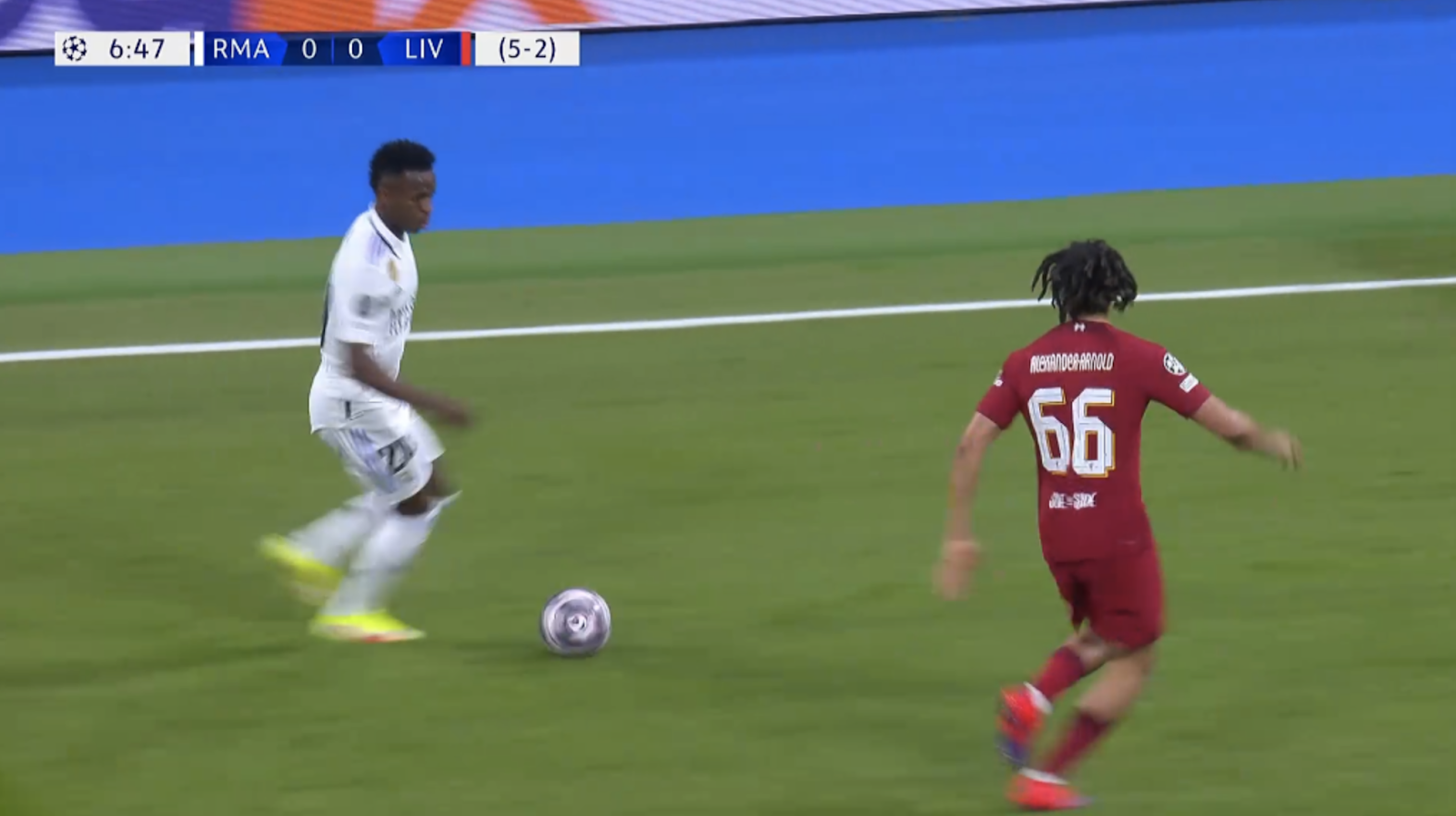 Но если пересматривать моменты с матча, Александр-Арнольд не так уж и много мог сделать против Винисиуса.