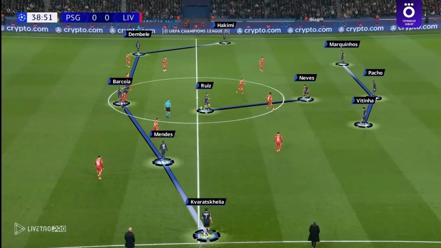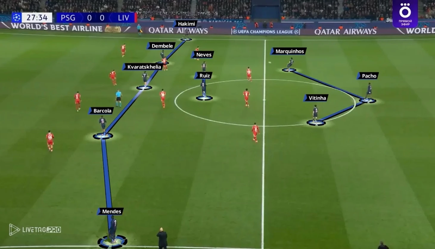 Вот, например, билдап ПСЖ в матче Лиги чемпионов прошедшего сезона против «Ливерпуля»: