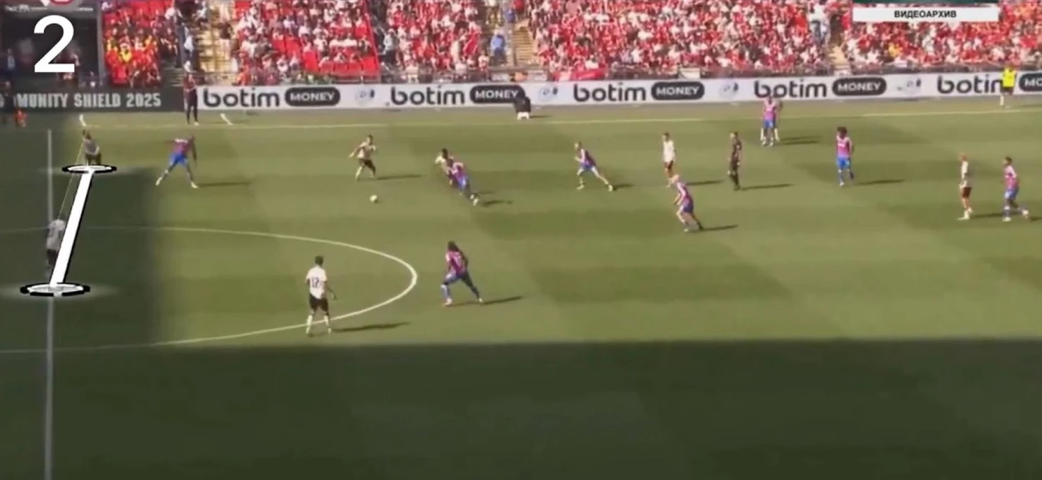 Сделав лишь 1 передачу на своего партнера, игрок «Пэлас» создал преимущество для своей команды, отрезав еще и Доминика. Это привело к тому, что атакующих игроков лондонцев в контратаке было столько же, сколько защитников «Ливерпуля», что практически гарантирует опасность.