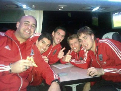 В автобусе с Пепе Рейной, Лукасом Лейвой, Себастьяном и Макси. Очень рад победе! Великолепный вечер! YNWA!