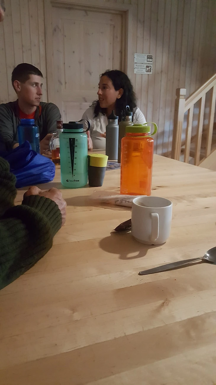 Бывают и крупные группы. Один раз решил ночевать не в палатке - а в самой хате, там в кемпинге было несколько довольно крупных строений и в них было полно места (на других его очень мало и почти все ночуют на улице). Сначала остановился в одном помещении с толпой немцев. Оказалось невыносимо. Они жутко шумные, шум стоял как в баре в пятницу, тем более у них как-то оказалось пиво (они вообще читтеры были - шли сами большой группой с легкими рюкзачками, а их большие рюкзаки и кучу еды им закидывали уже в места ночевок). Попросил перевести меня в другую избу - и оказался среди большой группы американцев. Но если немцы все были видимо хорошо друг с другом знакомы и вели себя чересчур весело и раскованно, то эти были все незнакомы и наоборот сидели все тихо и разговаривали полушёпотом маленькими группами. Я с одними поговорил немного, с другими поболтал, а потом совершил роковую ошибку и превратил американцев в немцев. Я разболтался с одним парнем который оказался из Окленда, хотя потом переехал куда-то, естественно поговорили про Голден Стейт, и про Миллс Колледж, и про Сан Франциско и т.д. - и тут я невзначай что-то спросил про Трампа - мол что вы о нем думаете и может ли он и правда выиграть.