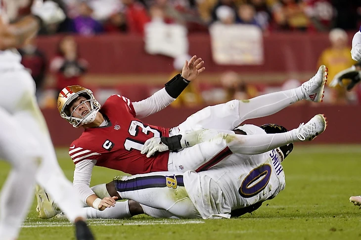 Уже в следующей игре он показал, что это был просто неудачный вечер, он по прежнему в порядке, он выдал отличный матч с Вашингтоном, который и зацементировал первое место СФ в НФС и на последнюю игру его даже не выпустили. Конечно его финальные показатели несколько просели после игры с Балтимором – но он все равно закончил сезон с потрясающим рейтингом 113.0 (14-й в истории и 2-й в истории среди второгодок после естественно Патрика с его 113.8 в легендарном 2018 году), 0.31 EPA/D, 8.6 ANY/A – все показатели лучшие в лиге в 2023 году с большим отрывом и входят в топ-15 результатов всех времен.