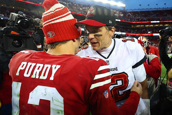 С исторической точки зрения его 119.0 рейтинга после 15 недель сезона были абсолютно абсурдными и на тот момент являлись одним из величайших результатов в истории. После 15 недель сезона лучший показатель всех времен был у великого Пейтона Меннинга в великом сезоне 2004 года – 123.9 (лучший сезон в карьере, 7й сезон в лиге, 50 ТД, однозначный МВП и т.д.), потом великий Аарон Роджерс 2011 – 120.1 (лучший сезон в карьере, 7й сезон в лиге, однозначный МВП), потом величайший Том Брэди 2007 – 119.7 (вообще величайший сезон который они закончили 16-0 уничтожая всех соперников в пух и прах, тоже 7й сезон в лиге, однозначный МВП), и потом… Брок Перди??? 119.0 – второгодка из 7-го раунда??? Как это вообще возможно? У того же Патрика в его невероятном первом сезоне 2018 годы было после 15 недель «только» 114.8 (и 113.8 по итогам сезона).