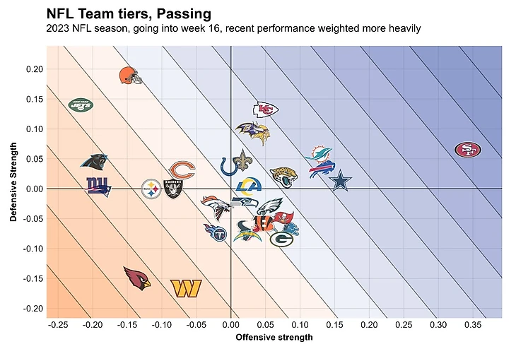 Вот, например таблица по двум ключевым показателям среди всех квотербеков после 15 недель.