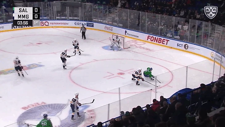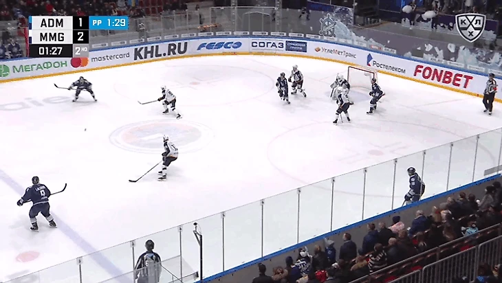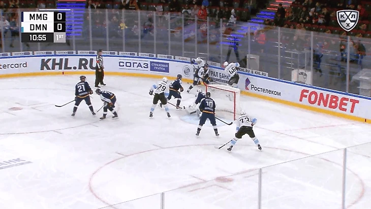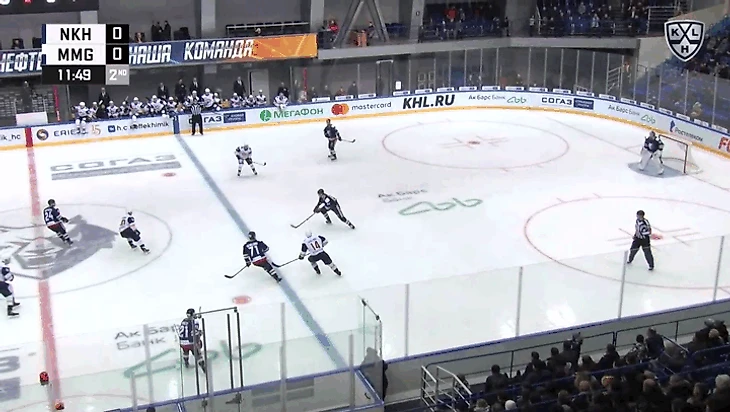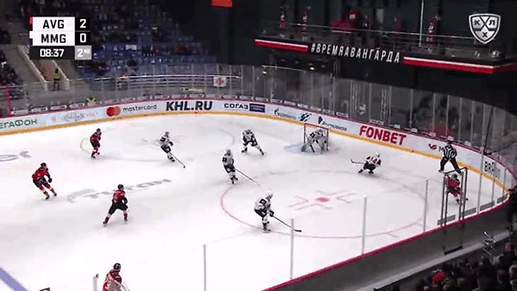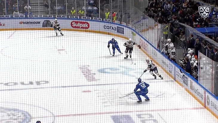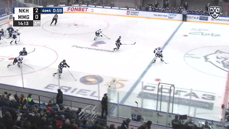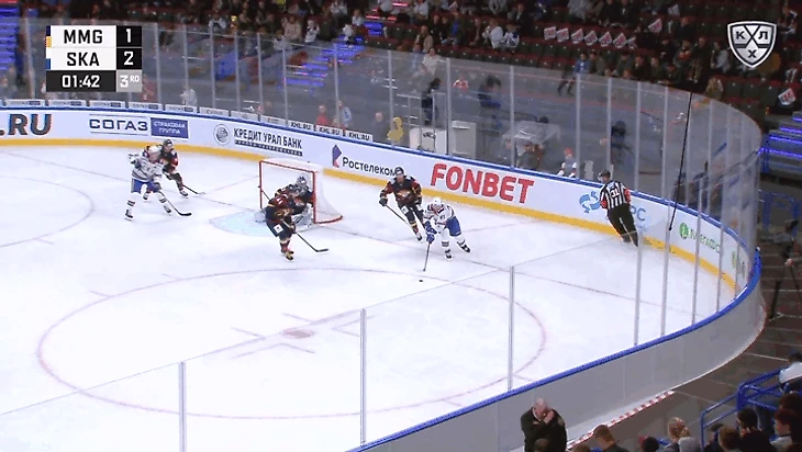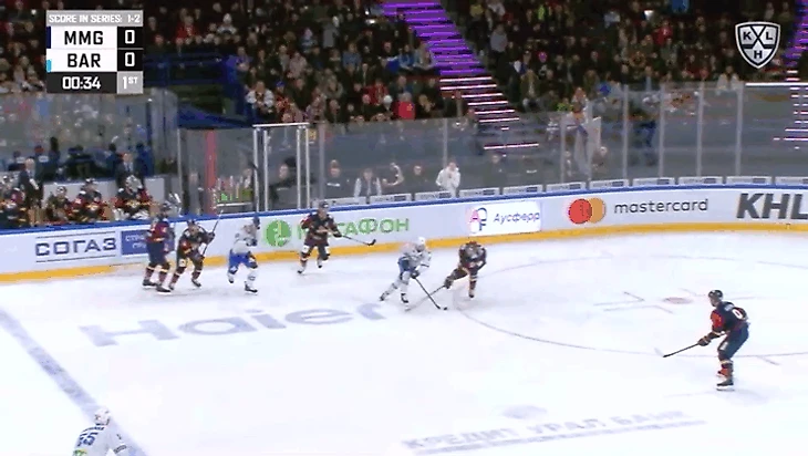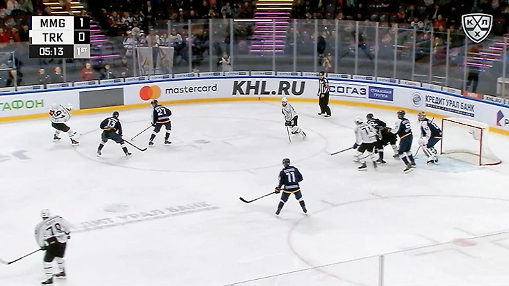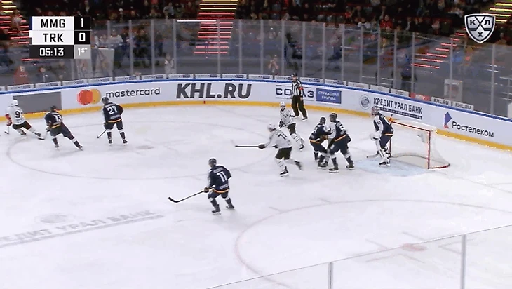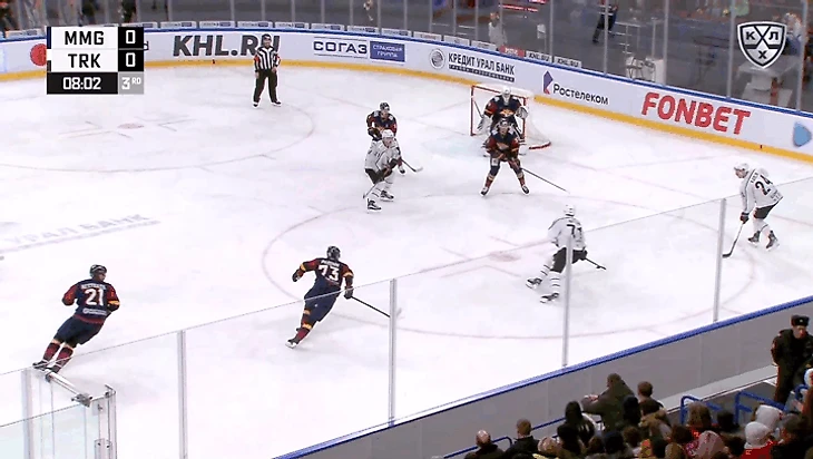 Нападающие Металлурга отрезаны, три в два для Трактора и добивание после отскока шайбы от борта.