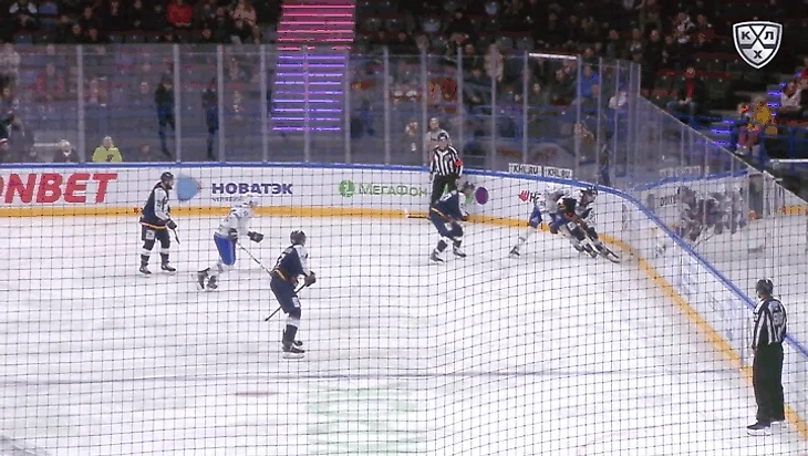 Береглазов останавливает передачу на Кугрышева, завязывается борьба. Третьим подключается Расмуссен, но не помогает, а Кугрышев отдаёт шайбу Кадейкину, который забрасывает шайбу в ворота через Верещагина.