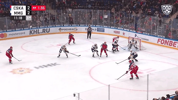 Выход три против двоих на Береглазова с Мозякиным, шайба оказывается за воротами.