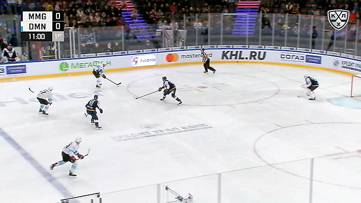 Защитник отправляется за ней и следует на дальний по картинке борт. После передачи от игрока Минска, Антипин бросает пятак, где свободным остаётся игрок Динамо. Итог предсказуем.