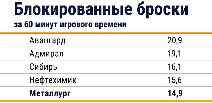 Но прежде чем думать об атаке, нужно обеспечить надежность сзади. «Металлург» действует плотно в своей зоне, стараясь защитить площадь перед воротами. Отдать периметр и насытить центр – идея не новая, но все еще эффективная. Грамотная позиционная игра и самоотверженность помогают справляться с давлением. По количеству блокированных бросков уральский клуб поднялся в топ-5 лиги, хотя был ниже среднего по этому показателю год назад.