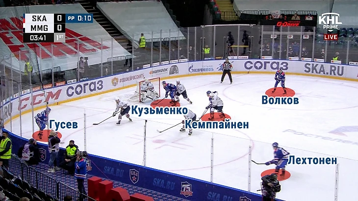 В СКА эта система закрепилась на постоянной основе, что сказалось на роли Антона Бурдасова. Форвард, обычно завершавший атаки броском из правого круга вбрасывания, оказался в непривычной позиции. В прошлом сезоне лишь 1 гол из 11 в большинстве он забил слева. В этом он оказывается справа лишь ситуативно.
