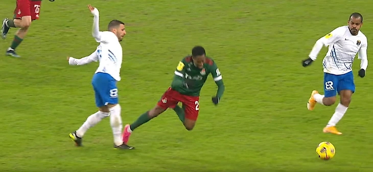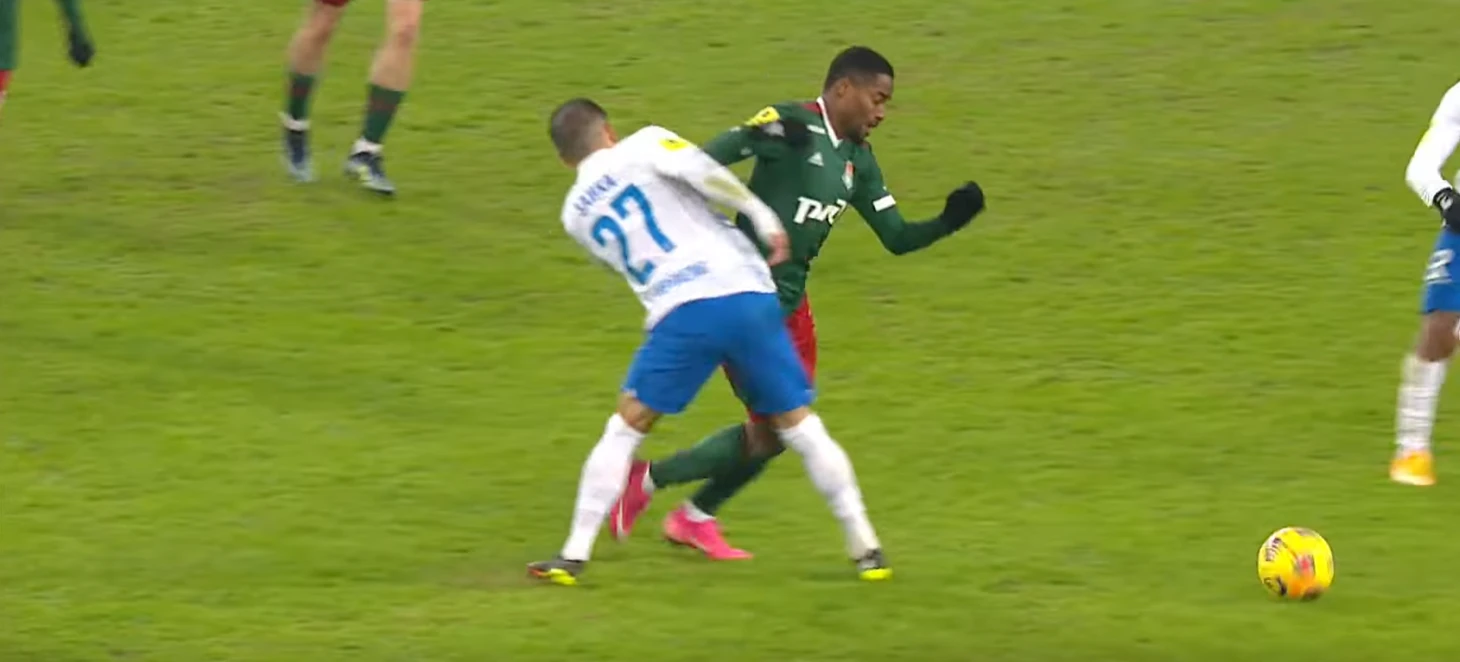 Как думаете сколько бы прилетело за такую игру Мурило? Риторический вопрос…