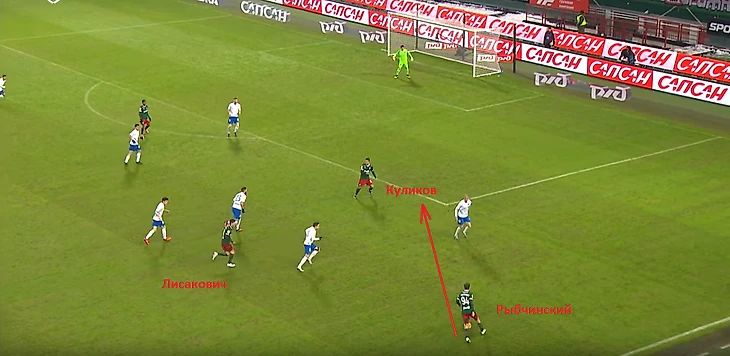 Вообще новая схема Николича подразумевает очень интенсивную игру центральных полузащитников от своей штрафной к чужой, особенно в полуфланговой зоне. Если слева у "Локо" есть "двужильный" Крыховяк, то теперь справа, после травмы Влада Игнатьева, на этой позиции закрепился Куликов.