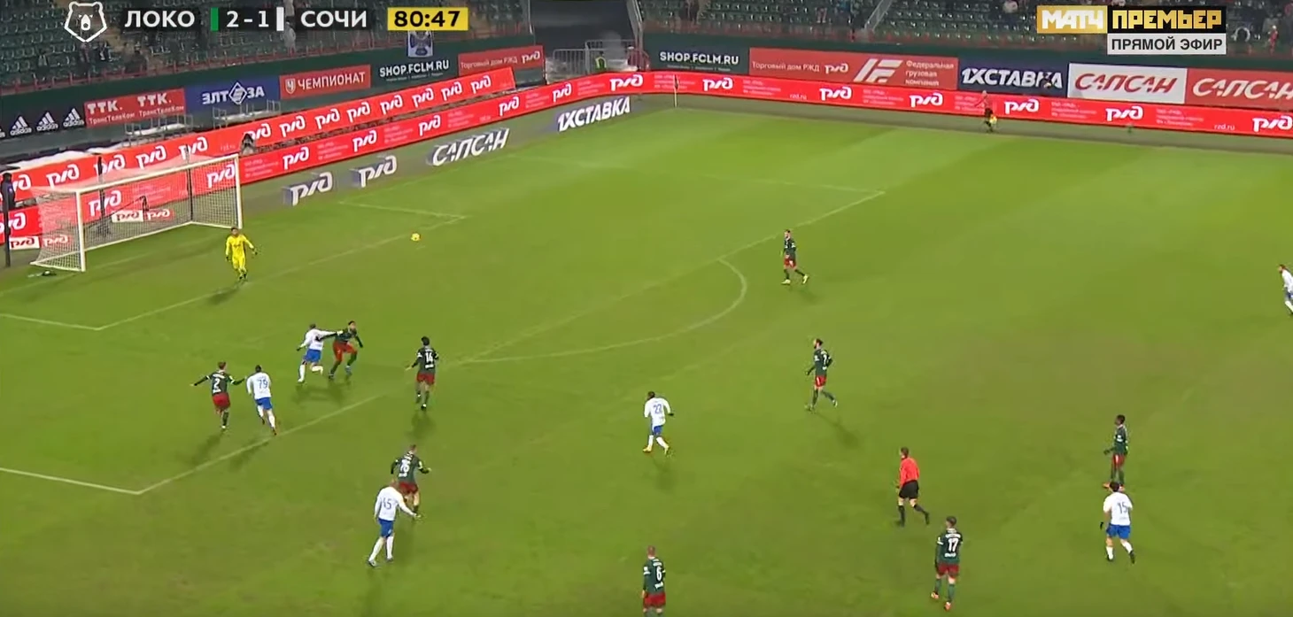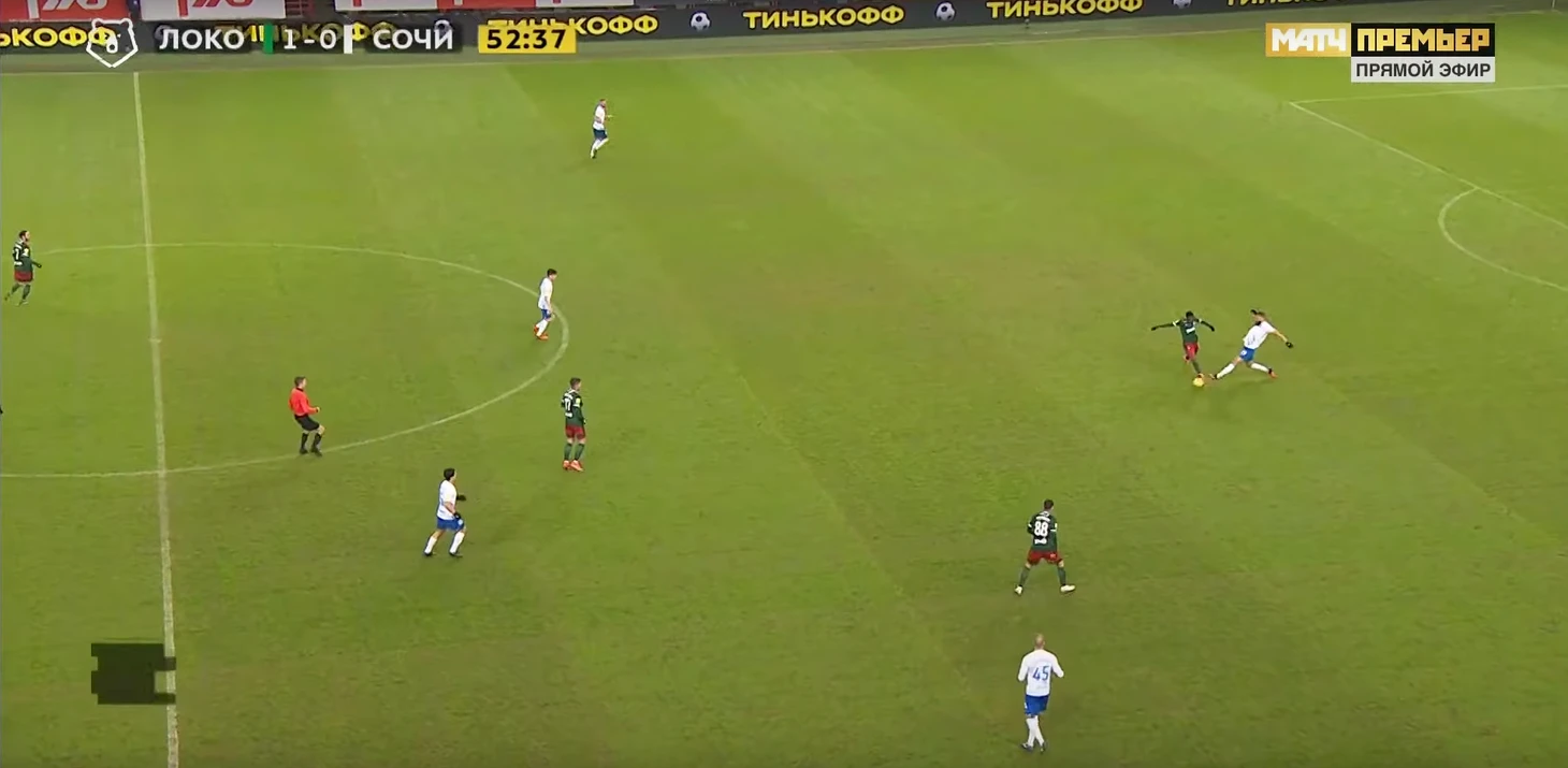 Во тором тайме «Локо» больше играл по счету. Если в первом тайме было колоссальное преимущество во владении 64 / 36, то в тайме втором уже «Сочи» больше владел мячом. Но не инициативой. В том и была задумка Николича, который очень прагматичен и не ставит владение ради владения во главу угла. Для него главное результат и если он достигнут, то команда перестраивается на более контратакующую модель, при этом не садясь глубоко в оборону. Повторился сценарий игры с "ЦСКА", только второй тайм на этот раз было все не так грустно, ведь «Локо» не прижимался так сильно к воротам и эпизодически включал неплохой прессинг.