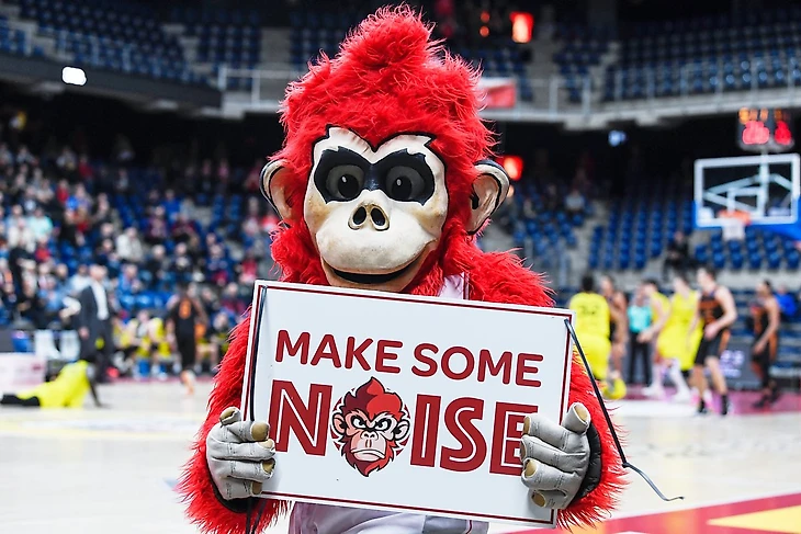 Атмосферу на арене поднимает яркий маскот, имя которого выяснить пока не удалось. Но это временно!