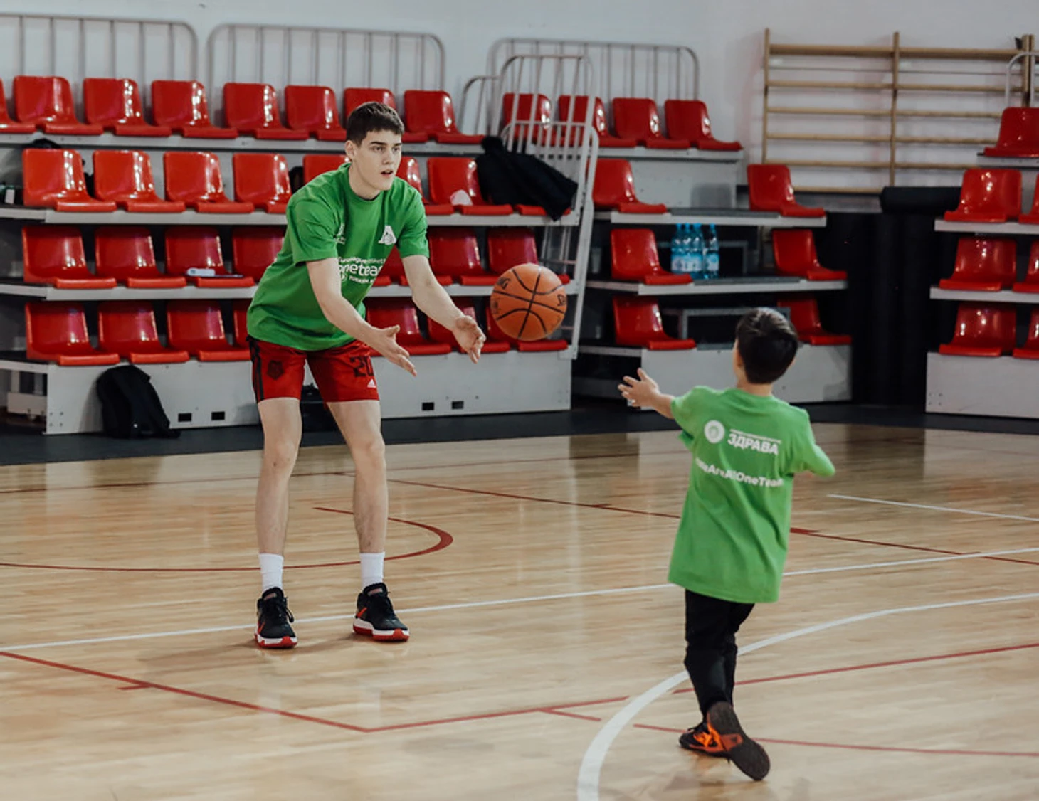 Одно из занятий One Team вместе с тренером провели игроки «Локо-2» Никита Рыженков и Виктор Титов, которые поделились с ребятами своими умениями на практике и обучили их ведению, а также поработали с ними над передачами и броском.
