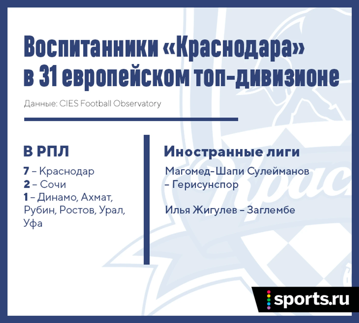 Традиционный вопрос при появлении таких рейтингов: «Как там школа «Краснодара»? Она уже подпирает топ-5 академий.