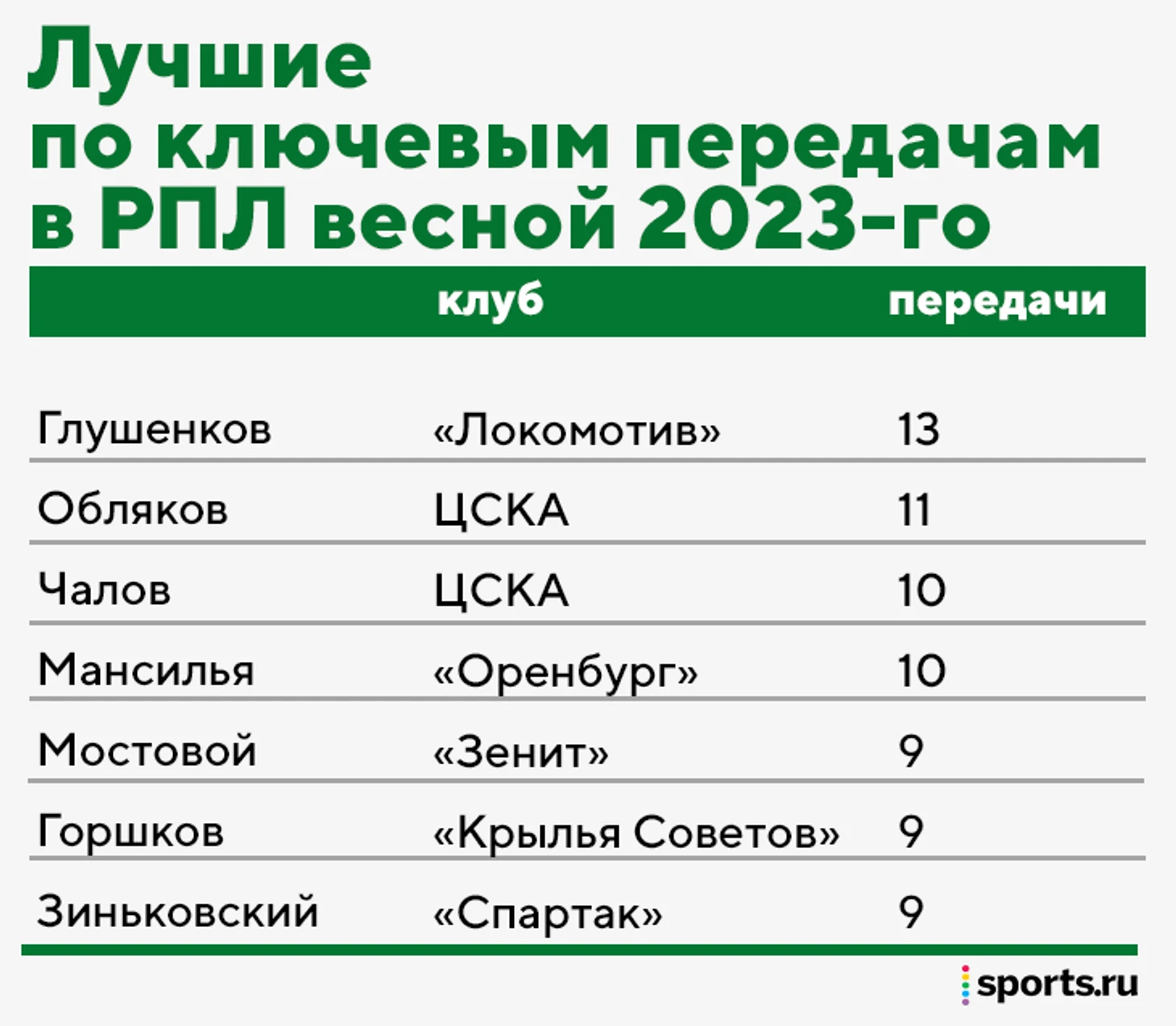 Артем Дзюба вошел в весенний топ-5 РПЛ по голам и ассистам (8+5), а по индексу атаки от DataHub вообще стал первым, обогнав даже Малкома. Максим Глушенков – лидер второй части сезона по ключевым передачам (после них возникает явная возможность забить гол) по оценке DataHub.