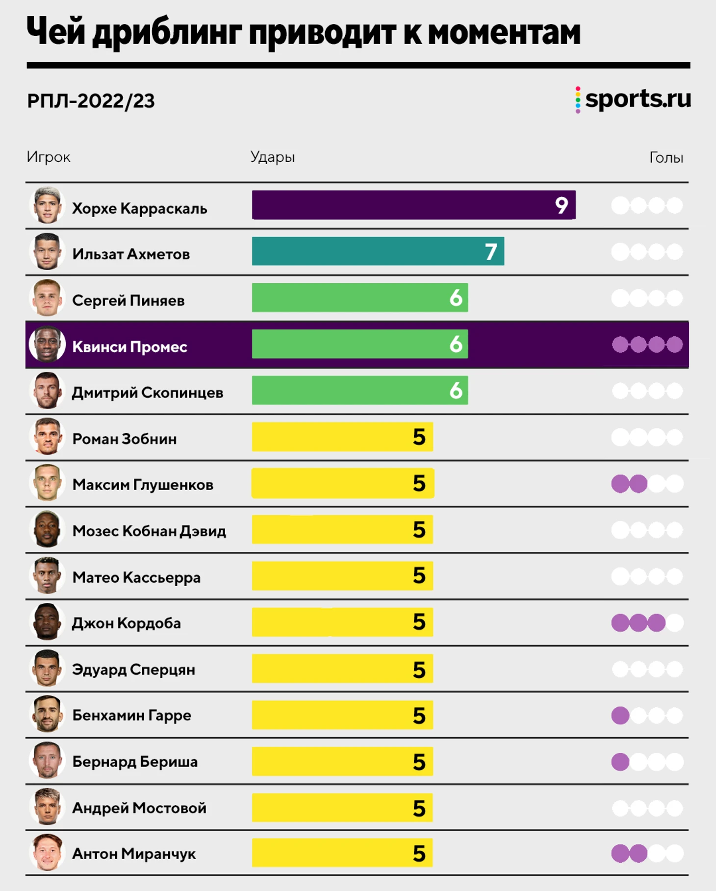 Но, вероятно, главный фактор роста «Локо» – прогресс Сергея Пиняева. Кажется, пока он показал только демо-версию того, на что способен – и даже этого было достаточно для попадания в топ-3 по эффективности дриблинга (шесть обводок привели к ударам, четыре стали голевыми) и награды лучшему молодому игроку РПЛ.