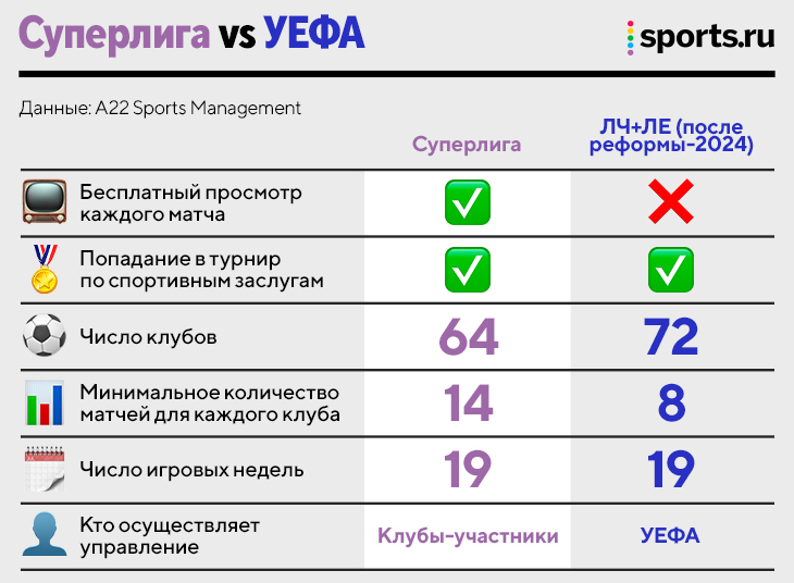 Я точно не хотел бы Суперлигу того образца. И не уверен, что хотел бы ее в обновленном концепте, который представила компания A22 Sports Management. Но в свежем проекте точно есть интересные реформаторские идеи, которые достойны внимания. Давайте абстрагируемся от эмоций.