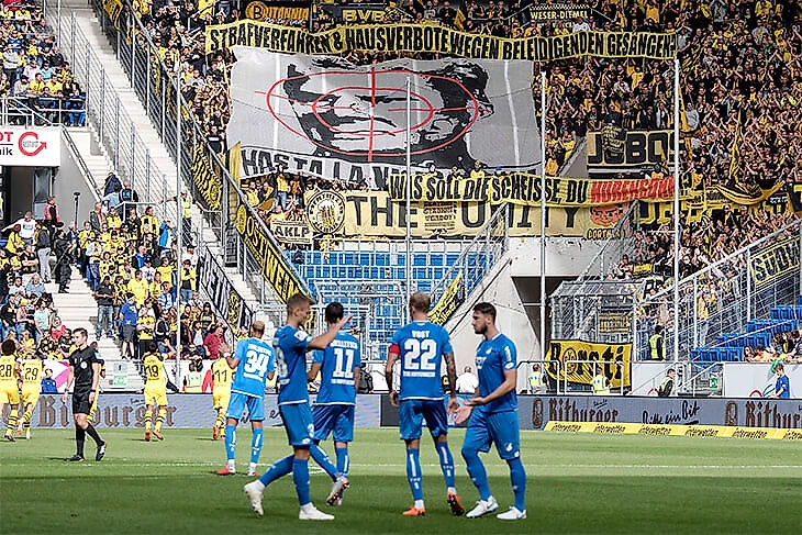 Может показаться странным, но тот же самый Дитмар Хопп – самый ненавистный футбольный босс в Германии. Из-за оскорбительных баннеров гостевых фанатов в его адрес прерывался матч «Хоффенхайм» – «Бавария». А вообще всем фанатам дортмундской «Боруссии» на три года запретили посещать домашние игры «Хоффе» – тоже за плакаты с оскорблениями владельца клуба из Зинсхайма.
