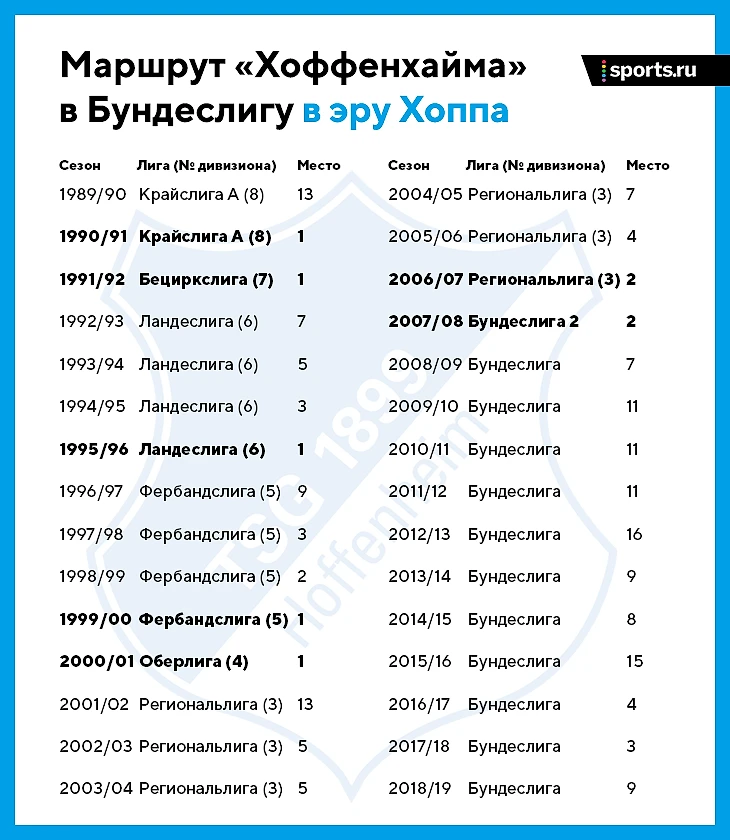В 2007 году команда, наконец, пробилась в высший дивизион и с тех пор его не покидает. В последние четыре года «Хоффенхайм» вышел на самоокупаемость и уже не зависит от денег своего богатого владельца".