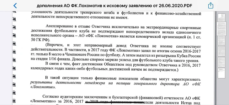 Если кто не понял, юристы Кикнадзе считают, что в 2016 и 2017 году успехи ФК «Локомотив» были «спорными». При этом ими полностью проигнорировано то, что клуб взял Кубок России и обеспечил неслабый отрыв от второго места к концу 2017 года: «факт достижения Обществом под руководством Ответчика в 2016, 2017 календарных годах каких-либо футбольных достижений ничем не подтверждается». Продолжаем пробивать дно, Василий Александрович!