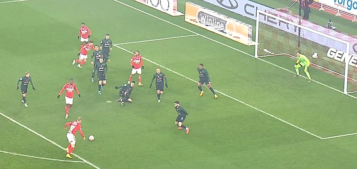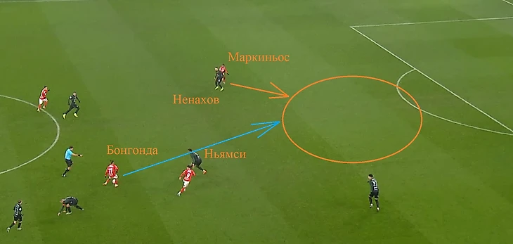 Началось правда все с ошибки Ньямси. Француз давно не привозил и тут вспомнил былое. После отбора промедлил, в итоге Маркиньос, блестяще проведший матч, отобрал круглого.