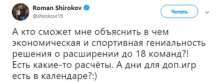 Кстати, любопытно, что в статье про календарь коллега оспаривает высказывание главы единственного клуба, который проголосовал против расширения. Федун против по другой причине – несостоятельности клубов.