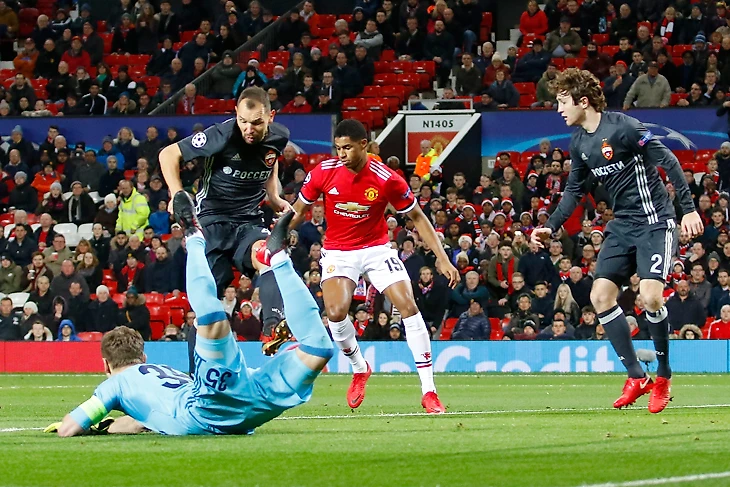 После гола Рэшфорда на поле армейцы совсем сникли (не считая разве что удара Дзагоева на 85-й минуте), зато перфоманс с традиционным раздеванием на трибунах был хорош. Кутаясь в шарфы (над «Олд Траффорд» как раз заморосил снег с дождем), англичане радостно засвистели и принялись снимать «сумасшедших русских» на телефоны.