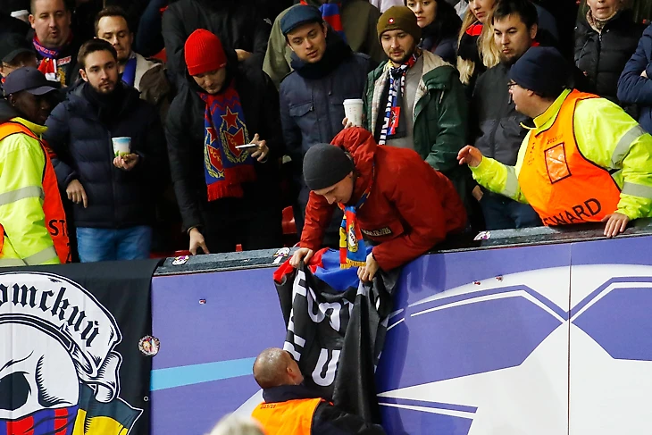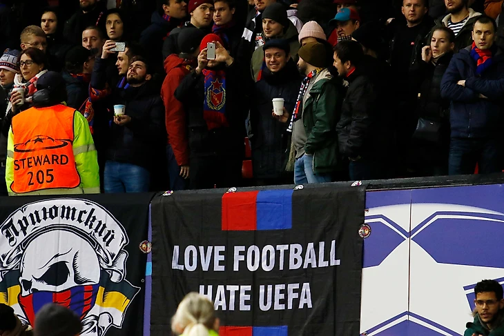 Перед матчем с трибуны ЦСКА чуть было не забрали баннер: стюарды усмотрели потенциальное разжигание в растяжке «Любить футбол, ненавидеть УЕФА» и попросили его свернуть.