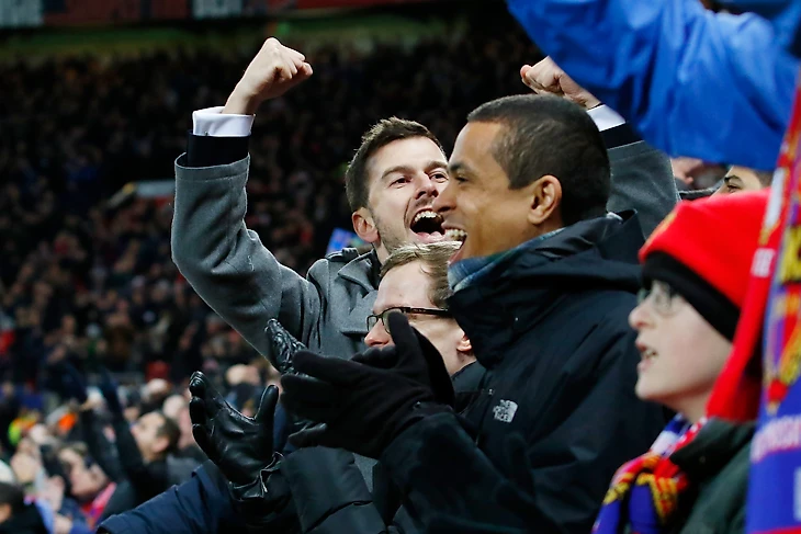 На центральной трибуне фотографы высмотрели Леонида Слуцкого. На экс-тренера ЦСКА и «Халла» англичане среагировали даже быстрее русских коллег, а сам Слуцкий, несмотря на увольнение, выглядел довольным. Еще днем он приезжал к команде в гостиницу, а весь вечер переживал за ЦСКА как в старые добрые времена: раскачивался, нервно размахивал руками и выкрикивал подсказки игрокам.