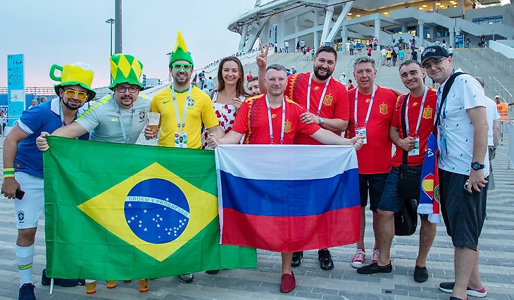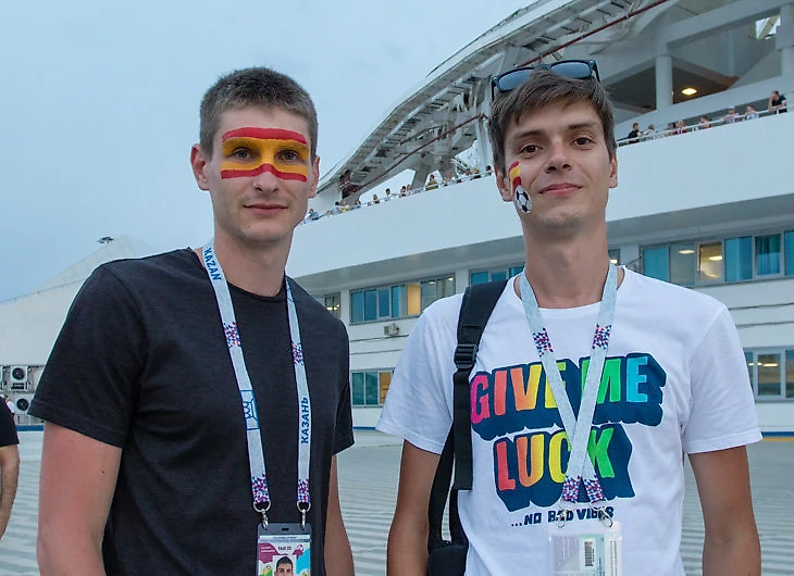 Испанцы с португальцами такие шумные! И испанцев больше, они сильно заметнее. В прошлом году мы ходили на Кубок Конфедераций: тогда тоже было хорошо, но и национальностей меньше, и болельщики не такие громкие. Нам вообще всем футбол больше нравится, так что чемпионат мира, конечно, круче.