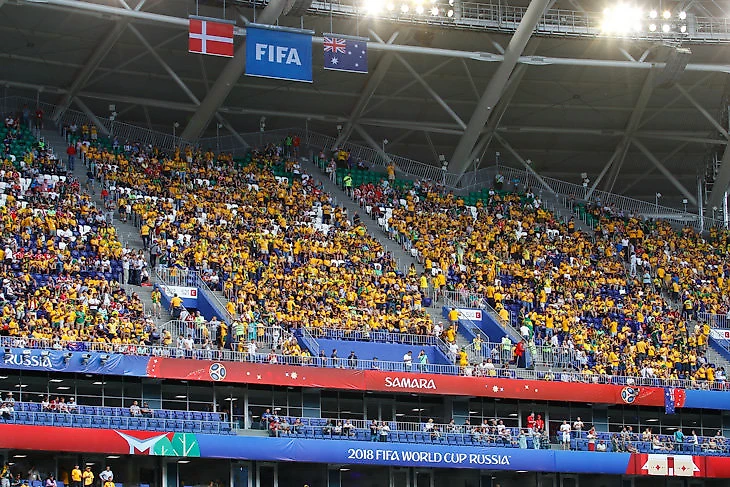 В день матча Дания – Австралия треть самарского стадиона стала желтой. Австралийцы заняли весь верхний ярус центральной трибуны и рассыпались яркими пятнами по другим. В итоге казалось, что матч проходит в Мельбурне или Сиднее.