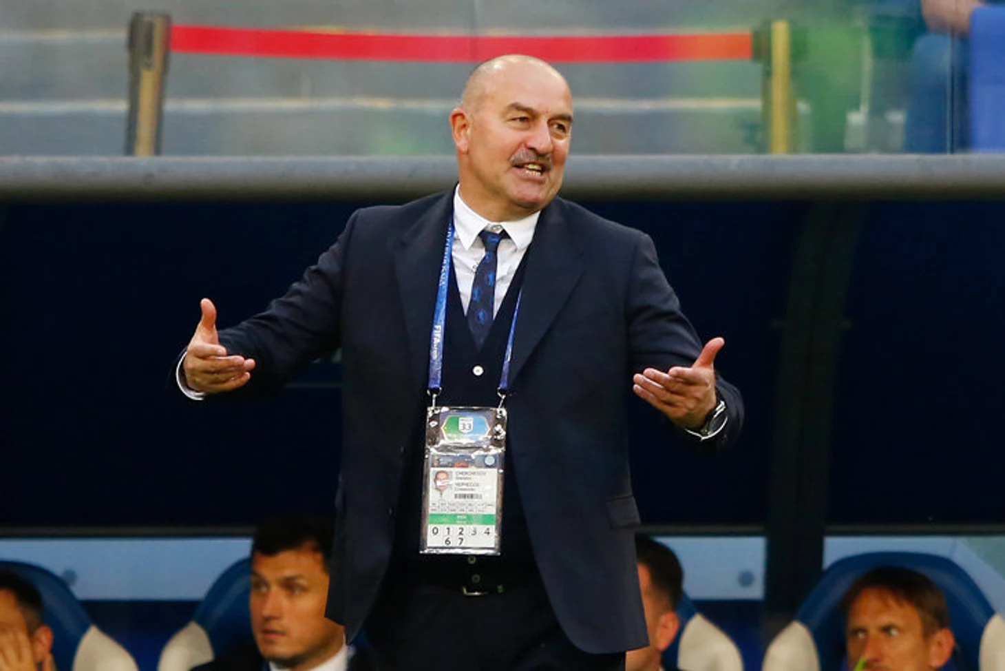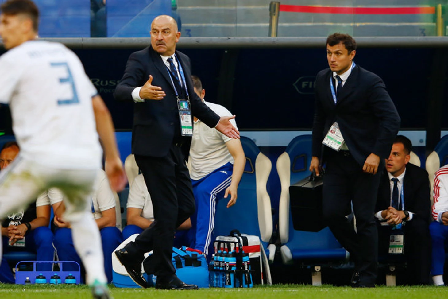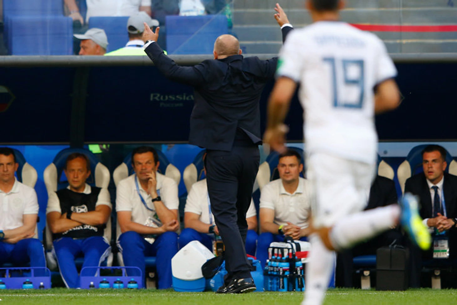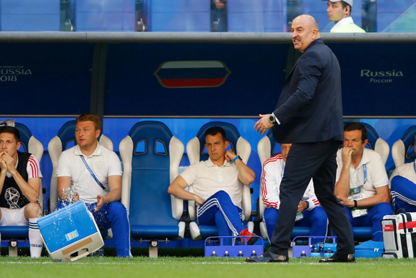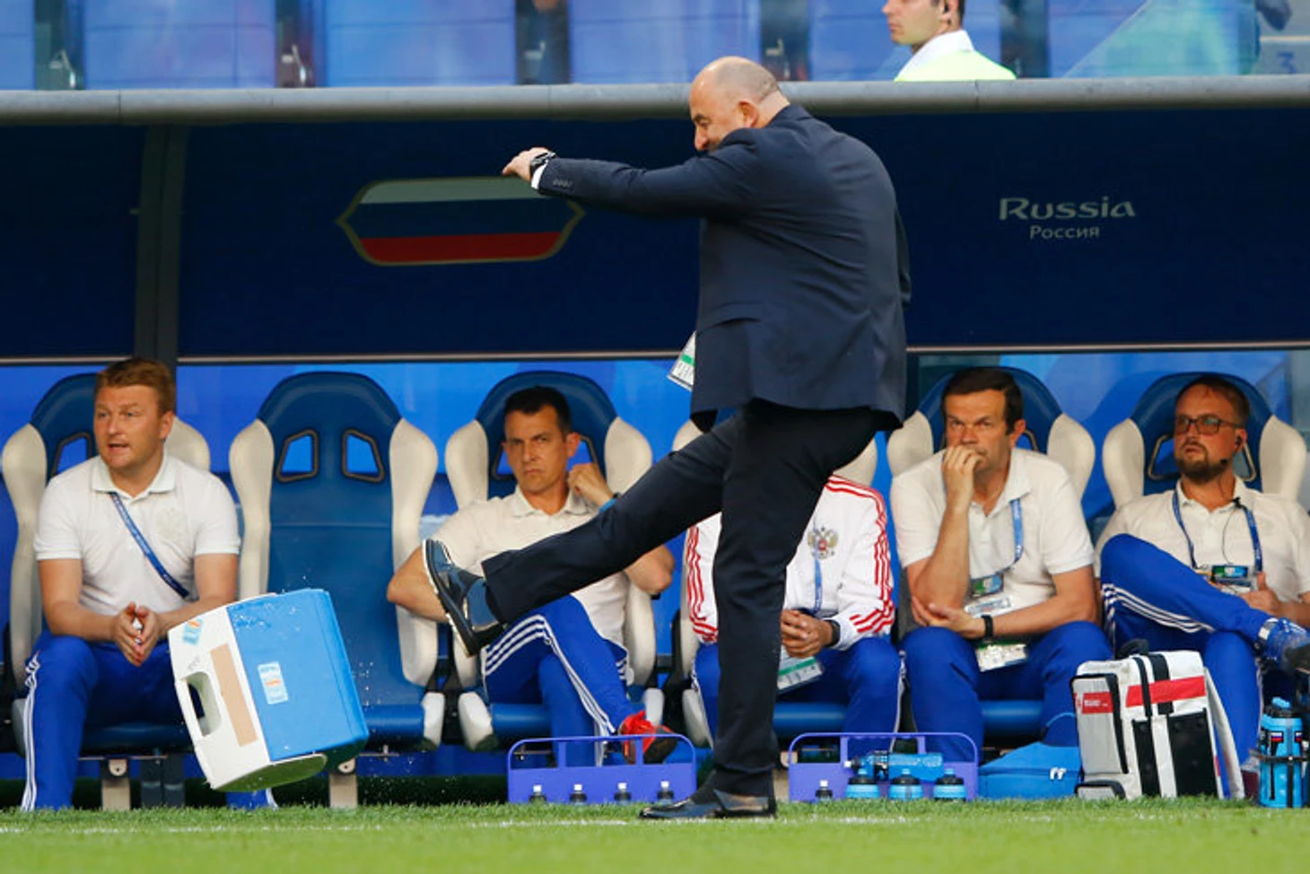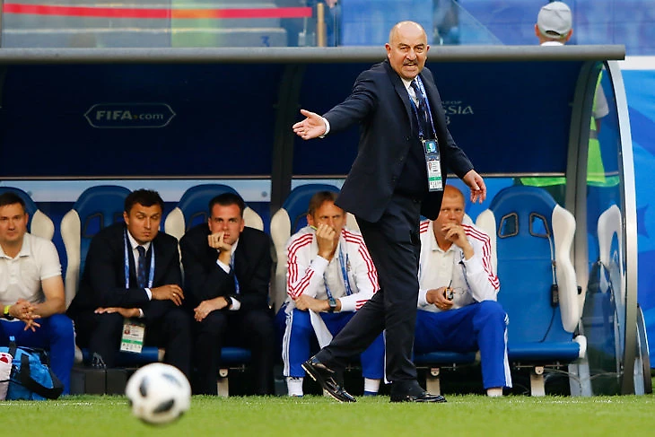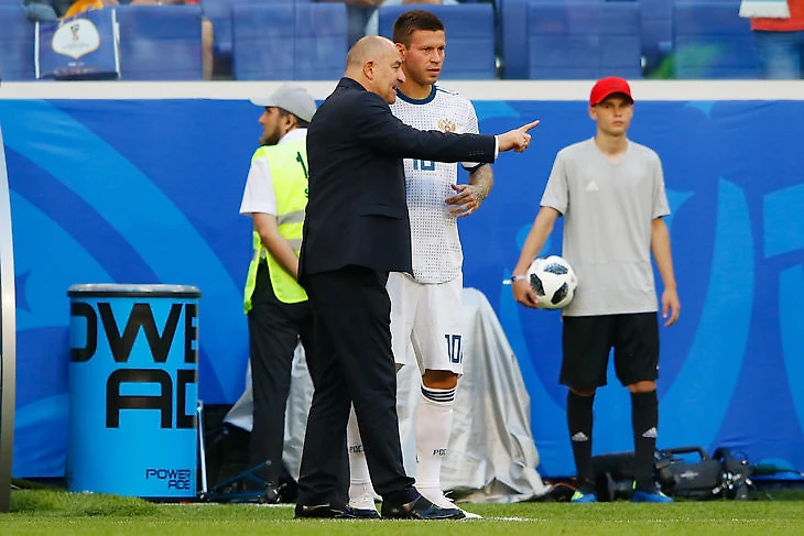 В начале тайма сборная привезла опасный штрафной. Черчесову это не понравилось.