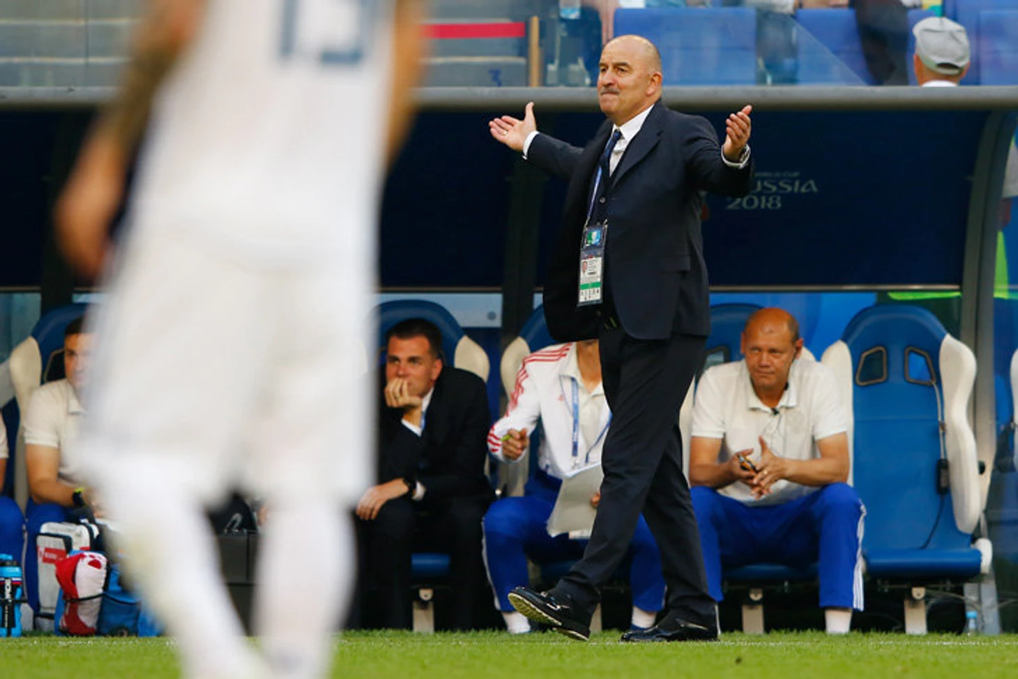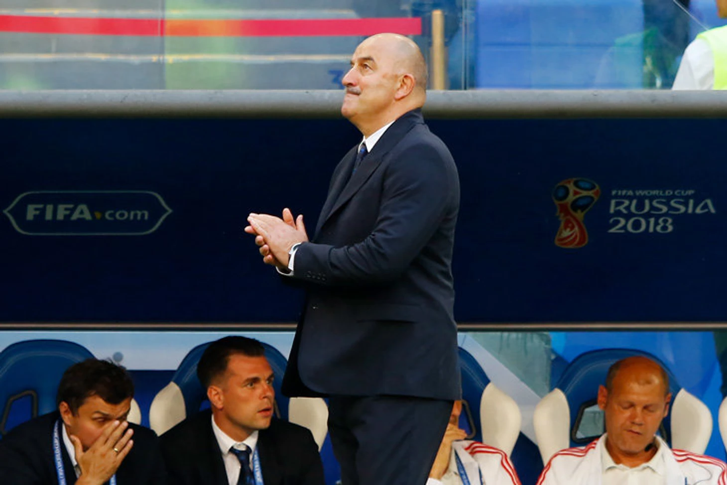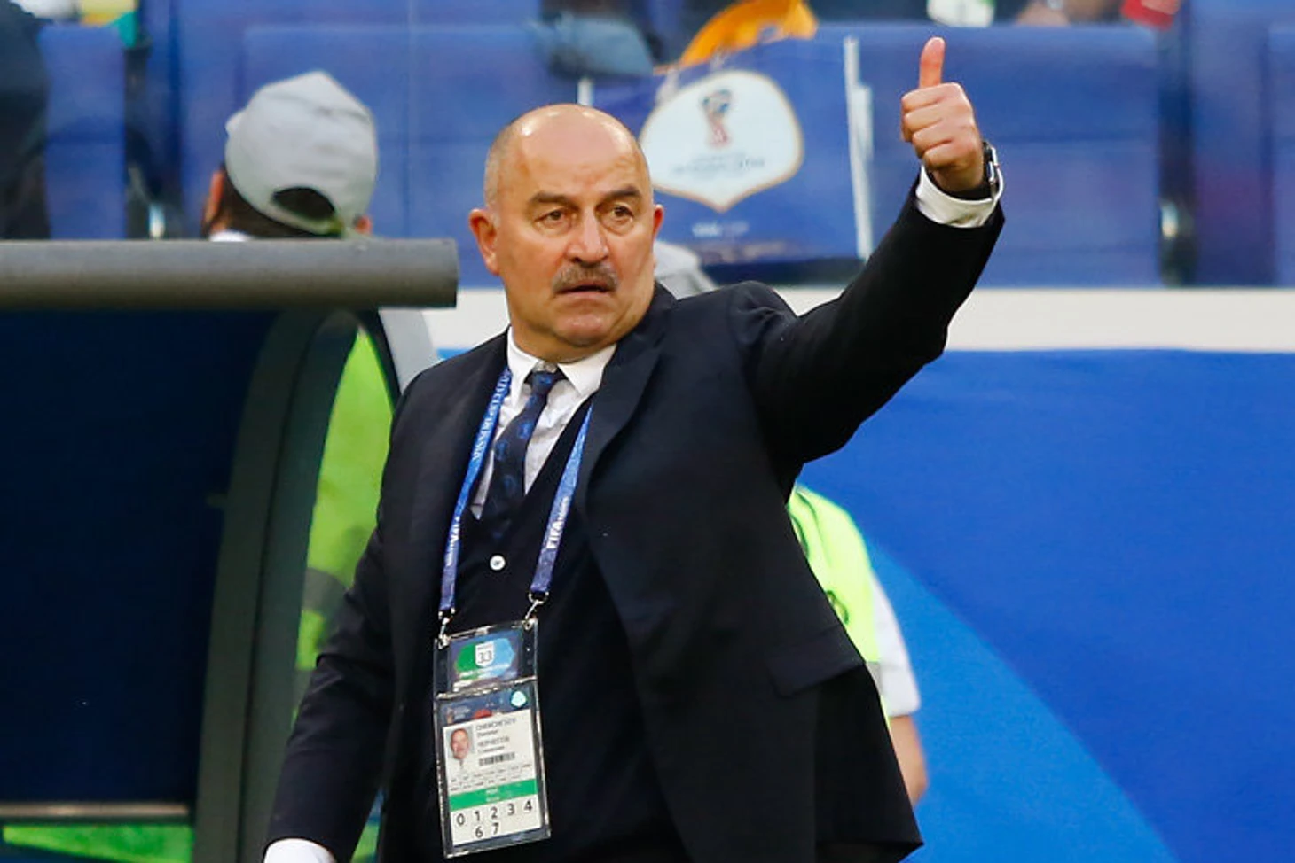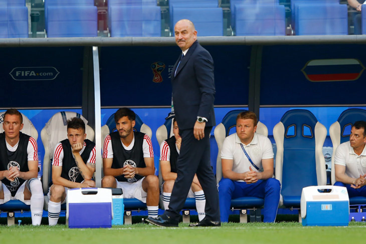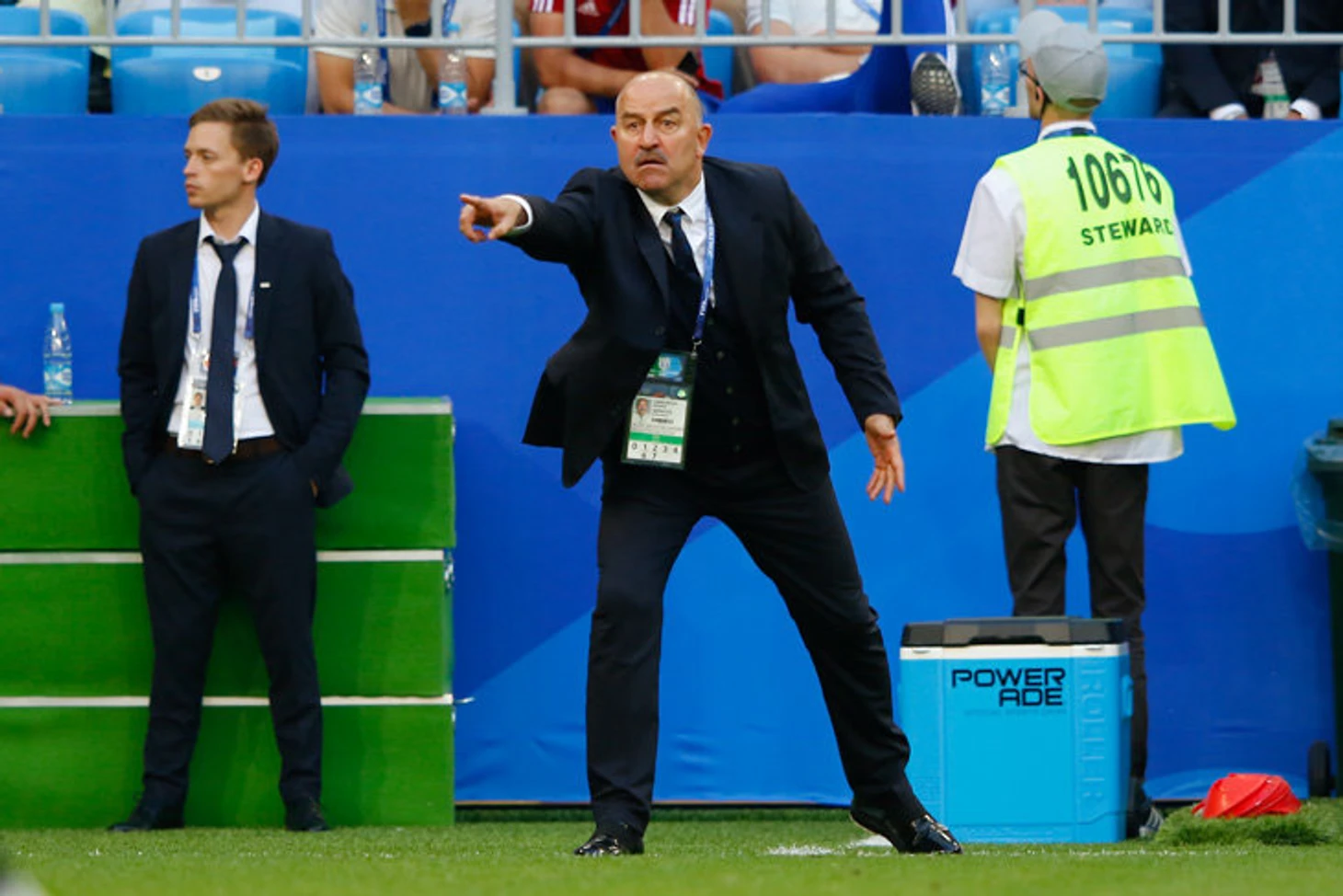 В начале тайма сборная привезла опасный штрафной. Черчесову это не понравилось.