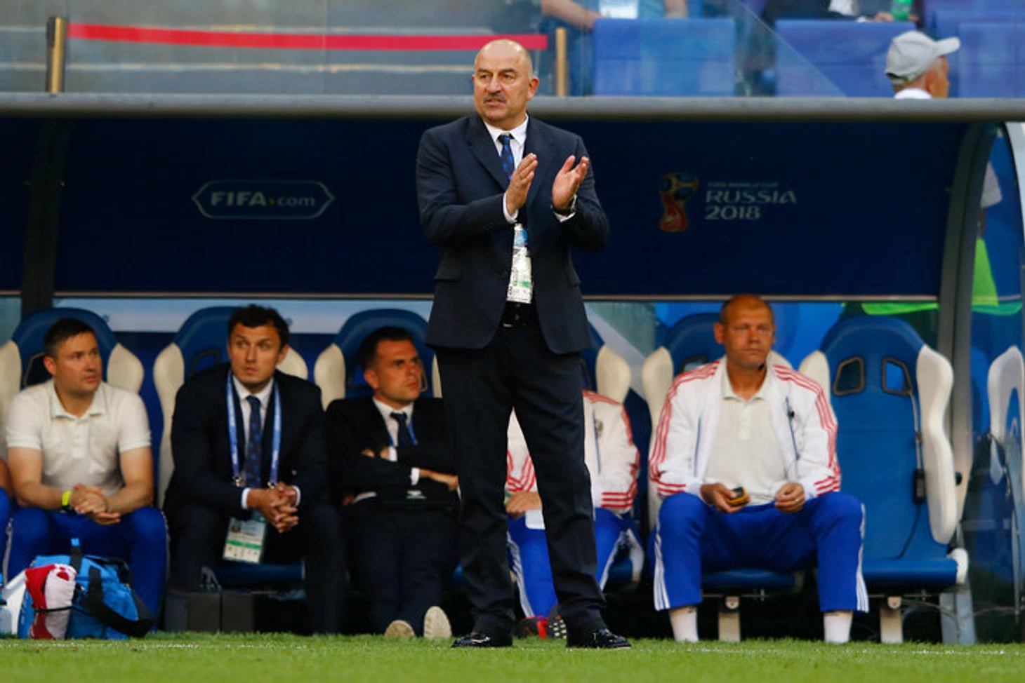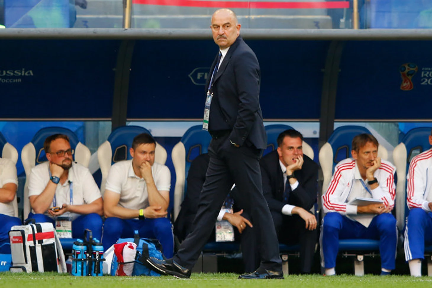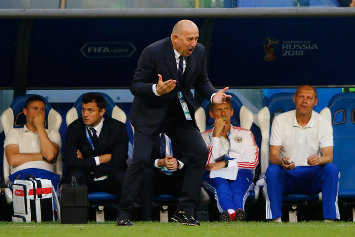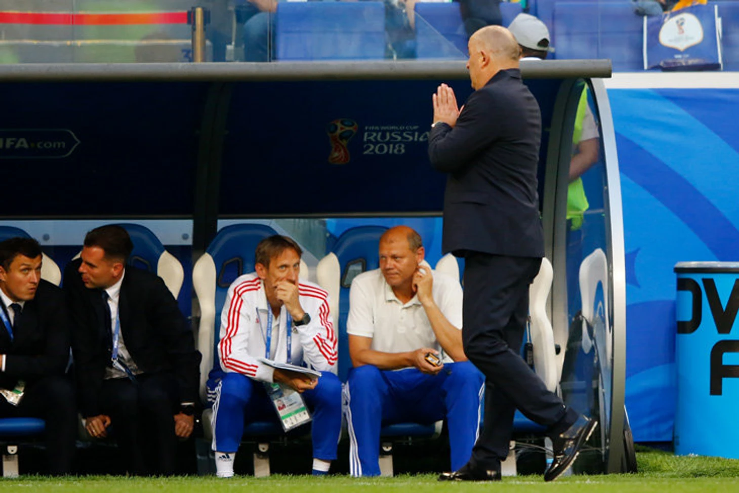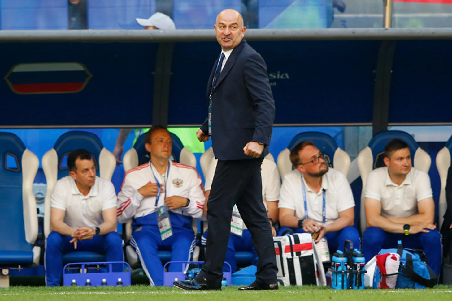 В начале тайма сборная привезла опасный штрафной. Черчесову это не понравилось.