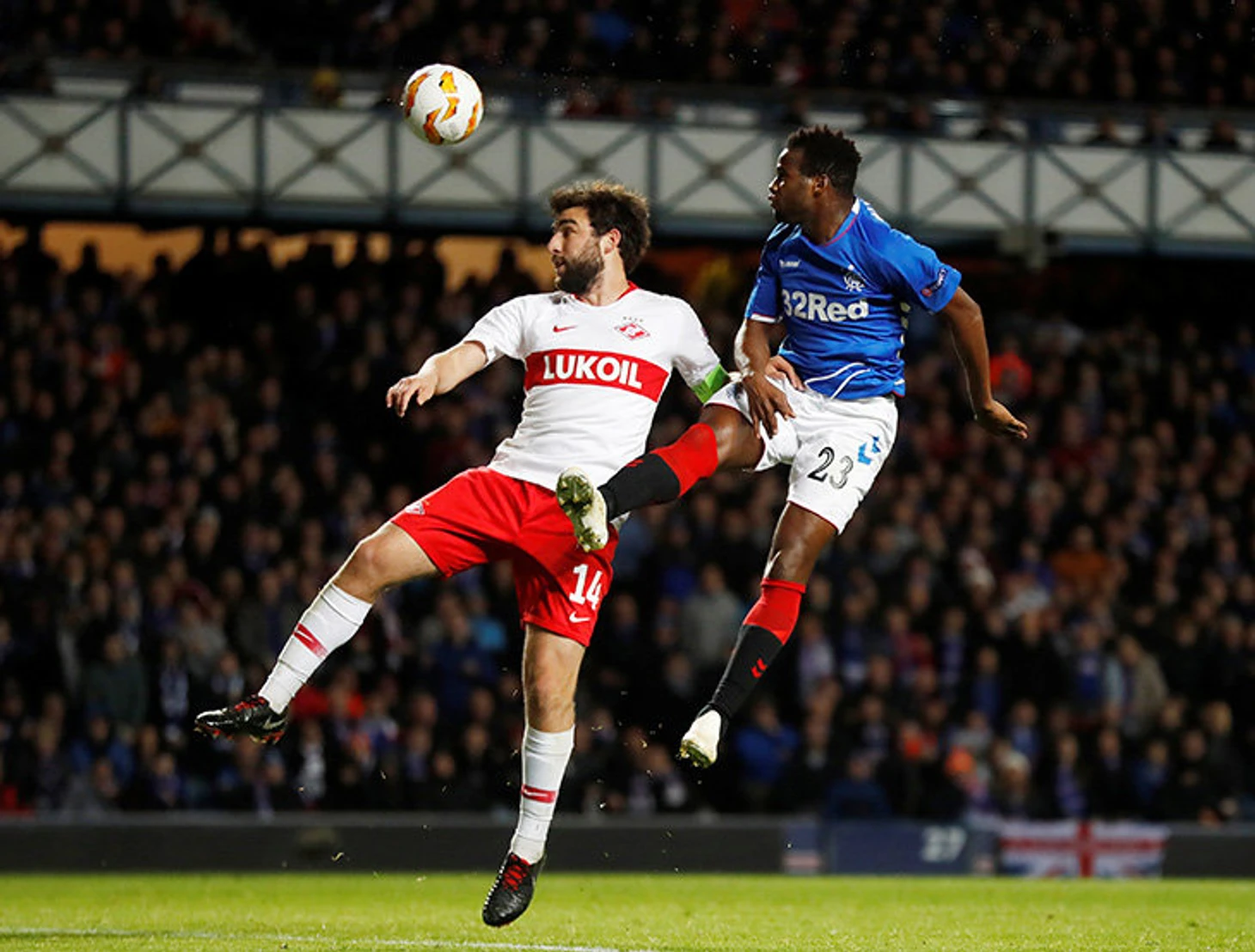 • Статистика, которую вы точно видели: в первом тайме «Спартак» 0 раз коснулся мяча в штрафной «Рейнджерс» и нанес 0 ударов по воротам Макгрегора. По итогам матча у «Спартака» 4 удара (1 в створ), но у «Рейнджерс» в три раза больше – 12 (3 в створ).